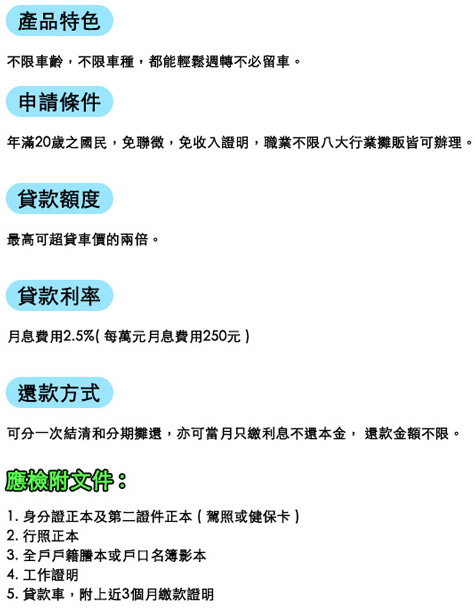 2.利息(以當舖法規定為準) : 月息最低1%~最高2.5%[年利率最低12%最高30%] (提早結清以日計算,無違約金)